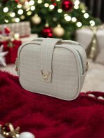 حقيبة مكياج طبقتين مع قفل ذهبي
