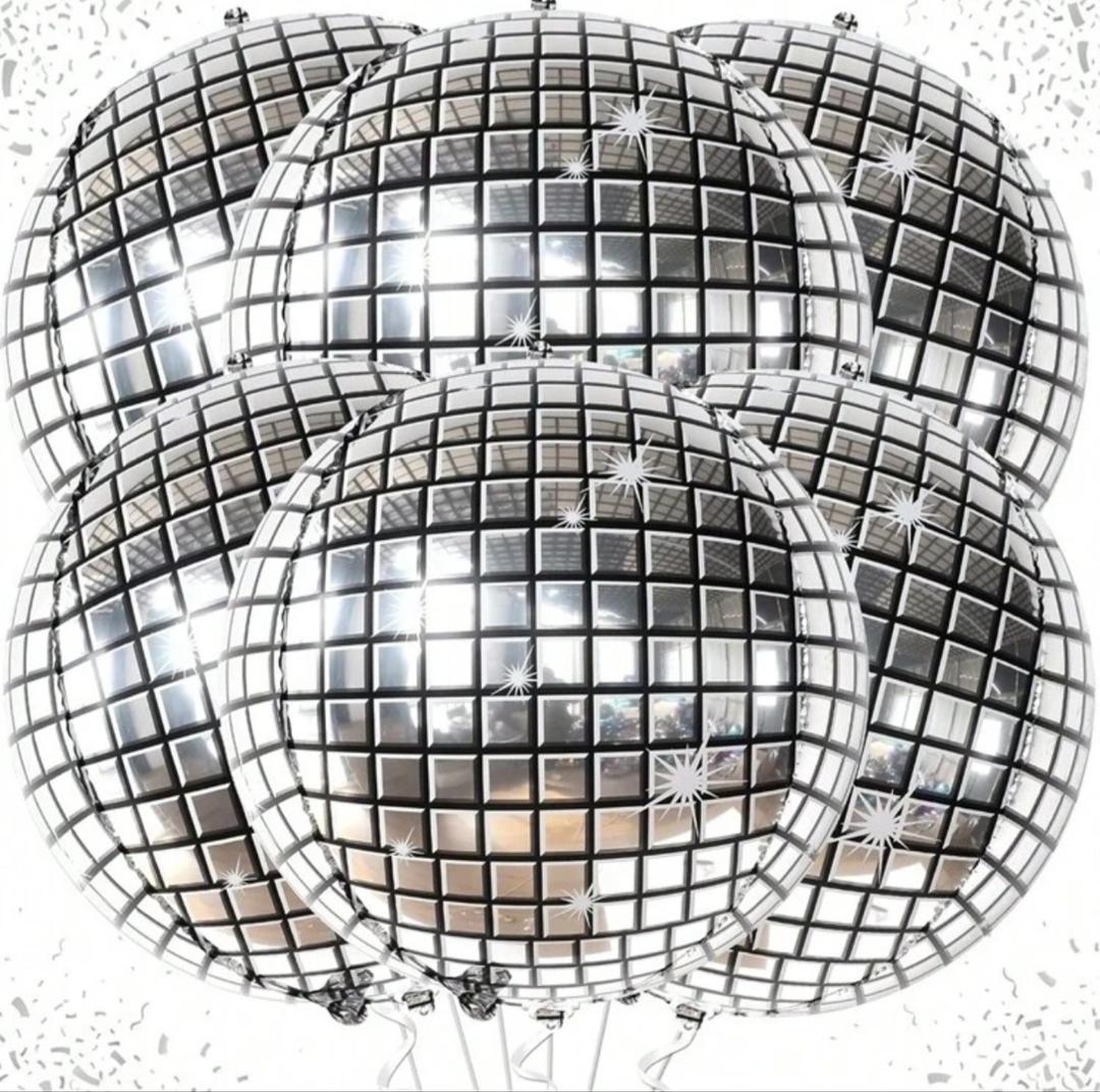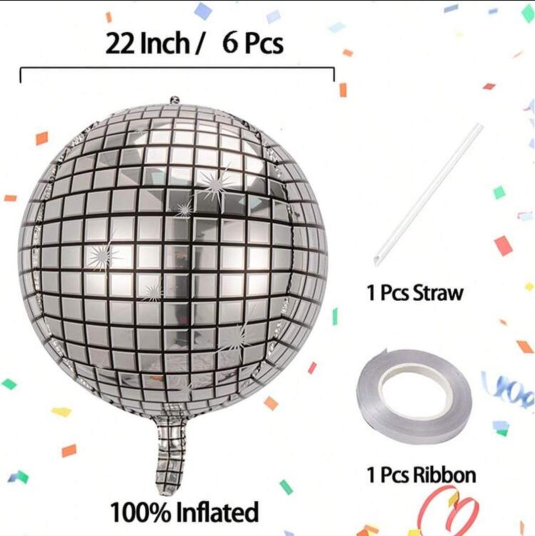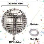 6 قطع من بالونات كرات الديسكو الفضية 22 بوصة ديكورات كروية 4D للحفلات ديسكو ، زينة حفلات عيد الميلاد السبعينيات ، ديكورات حفلات الأم ، عودة إلى زينة المدرسة في عيد الحب وتخرج الطالب
