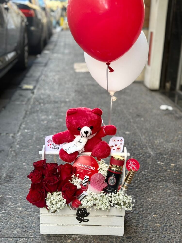 تنسيقة ورد و مكياج احمر