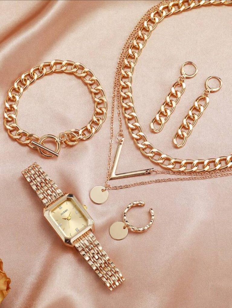 ساعة نسائية فاخرة باللون الذهبي الوردي
